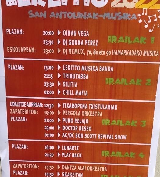Conciertos Próximos conciertos Azpeitia Detalles Azpeitia Detalles Vitoria – Gasteiz Detalles Atarrabia Detalles Bilbao Detalles San Antolin Detalles Getxo (Ereaga) Detalles Andoain Detalles Sondika Detalles Iruña (San fermín) Detalles barakaldo Detalles zornotza Detalles